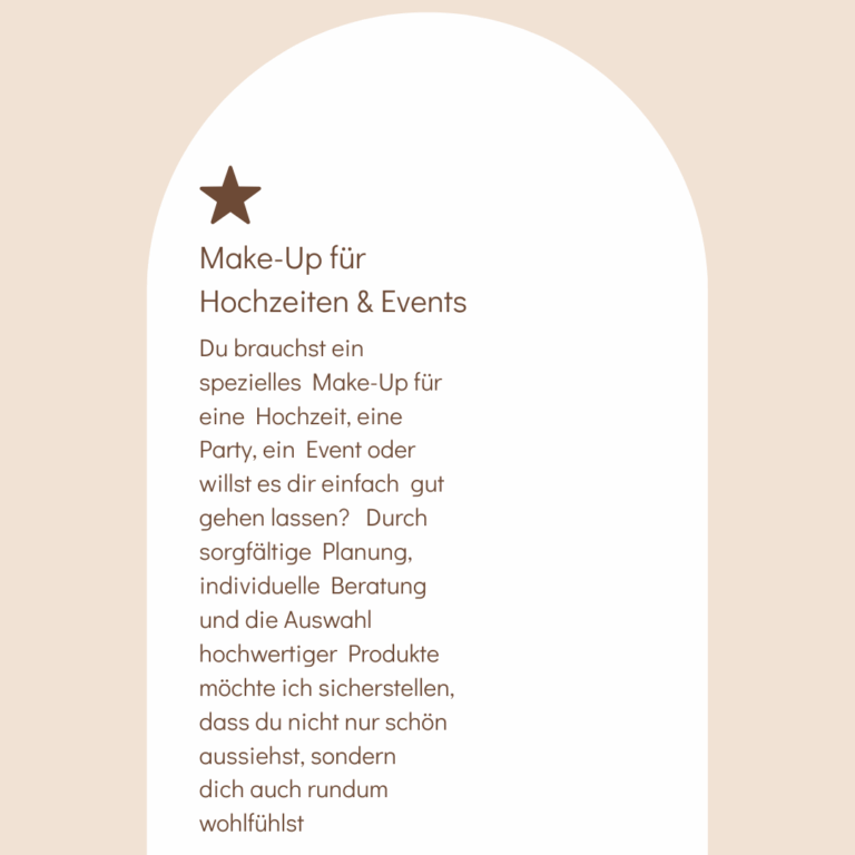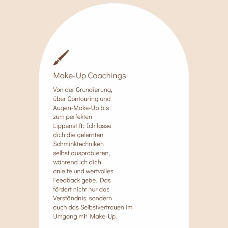 Als Make-Up Artist biete ich nicht nur professionelle Schminkdienste für besondere Anlässe an, sondern lege auch großen Wert darauf, dir die Kunst des Make-Ups näherzubringen. Es ist mir wichtig, dass du dich nicht nur zu besonderen Anlässen rund um wohl und schön fühlst, sondern dass du die richtigen Techniken für deinen Typ auch selbst anwenden kannst.